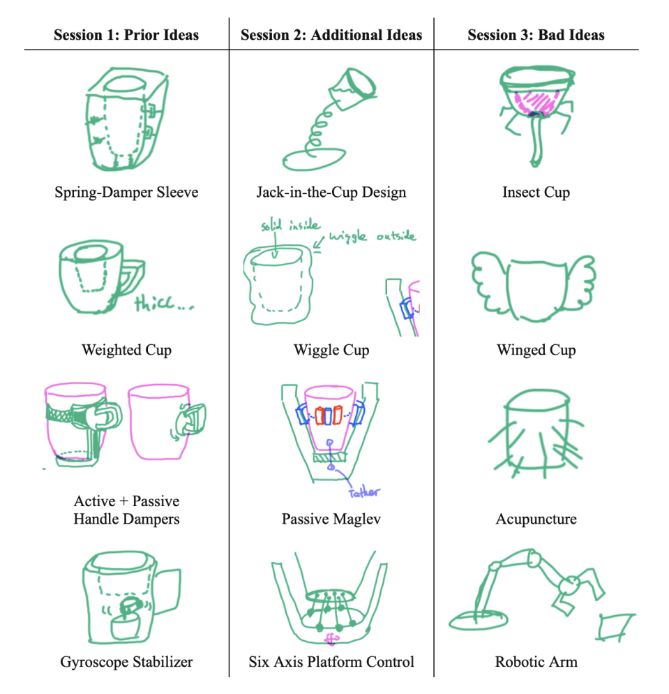 To maximize both functionality and aesthetic appeal for assistive cup holders, multiple ideas were made during sequential brainstorming sessions and also a beta prototype concept which is a passive system.